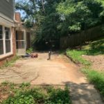 1321 Cross Timbers in West Nashville was a tricky project due to the lack of access to the patio in the backyard. Not only was the house sitting on a huge hill, but the backyard was fenced in. Although, with a little planning, we were able to remove the fence and create plenty of access to complete the project on time and within budget. HBG Construction wanted a 600 square foot rounded patio with a seat wall along the back middle of the slab. This would surround a fireplace blockout.