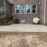 1402 Copperfield Place was a quicker than typical exposed aggregate projects. We had the opportunity to form & pour on the same day due to the small size of the project. We began the project first thing in the morning by grading the perimeter of the existing concrete patio. Once dirt was compacted to the proper elevation we were ready to start forming. The concrete patio was extended 234 square feet as shown in the project photos. After layout was approved, we spread and compacted 4 inches of gravel as the base of the slab to help with settlement and drainage. Before pouring concrete we drilled and epoxied rebar dowels at 18″ on center along the edge of the existing concrete slab and the new concrete slab. This construction joint protects the two slabs from moving and creating a tripping hazard in the future. Finally, we were ready to pour and used the bobcat to carry 4 cubic yards of concrete from the Nashville Ready Mix truck to the patio. After concrete had been received finishing (screed, bull float, fresno) we sprayed surface retarder across the surface and placed 6mil plastic across the top. The surface retarder brings the aggregate to the surface to give the concrete it’s “exposed aggregate” look.